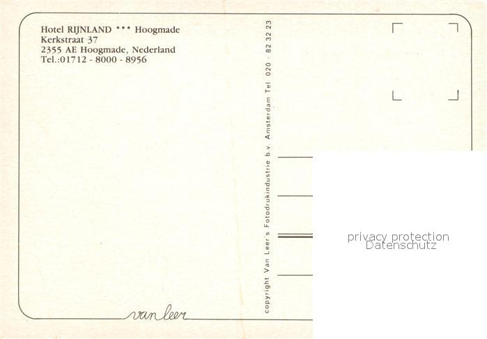 Hoogmade Hotel Rijnland postalisch nicht gelaufen Erhaltung siehe scans [WerneD78]