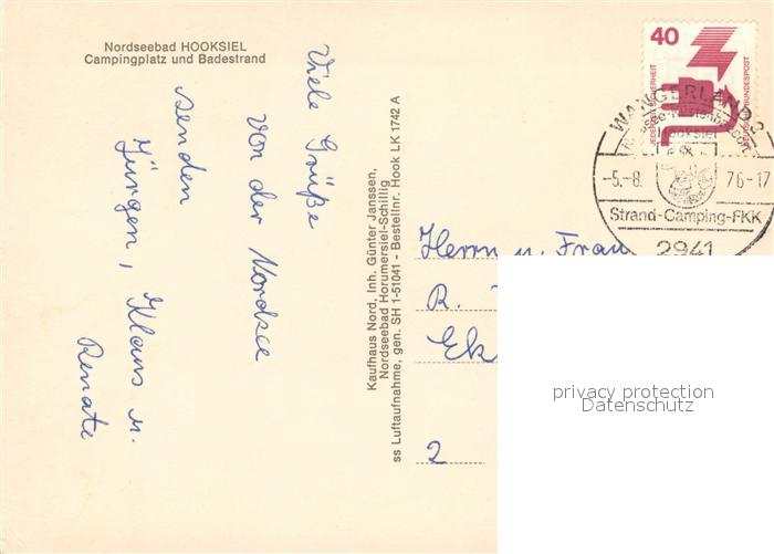 73723930 alte Postkarte Hooksiel Nordseebad Campingplatz und Badestrand postalisch gelaufen Erhaltung siehe scans [WerneD78] KatCode: 11110003455020