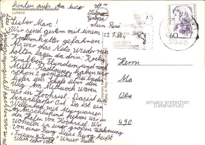 72541124 alte Postkarte Hooksiel Nordseebad Fliegeraufnahme postalisch gelaufen Erhaltung siehe scans [AndreD76 kt119box] KatCode: 11110003455020