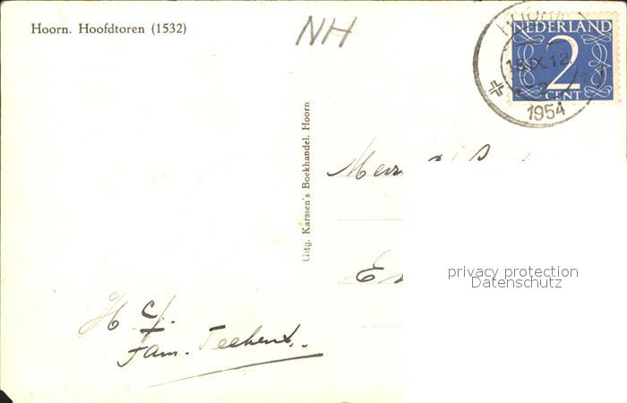 old postcard Hoorn Hoofdtoren anno 1532 Hauptturm postalisch gelaufen Erhaltung siehe scans