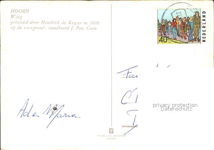 old postcard Hoorn Waag Standbeeld J Pzn Coen postalisch gelaufen Erhaltung siehe scans