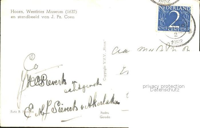 old postcard Hoorn Westfries Museum anno 1632 Standbeel van J Pz Coen postalisch gelaufen Erhaltung siehe scans