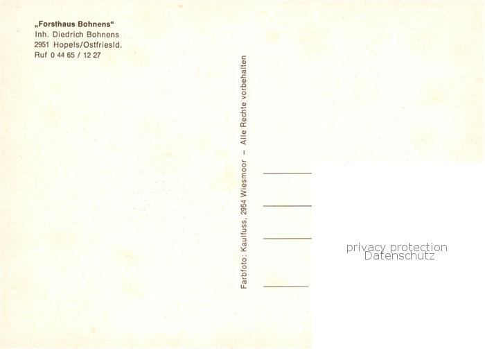 73865223 Hopels Friedeburg Forsthaus Bohnens Gaststaette postalisch nicht gelaufen Erhaltung siehe scans [FriedD77] Frie Katcode 11110003462005