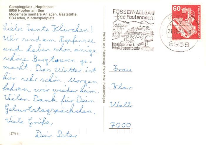 73942349 alte Postkarte Hopfen See Campingplatz Hopfensee Alpenpanorama postalisch gelaufen Erhaltung siehe scans [FriedD77] KatCode: 11110009777129