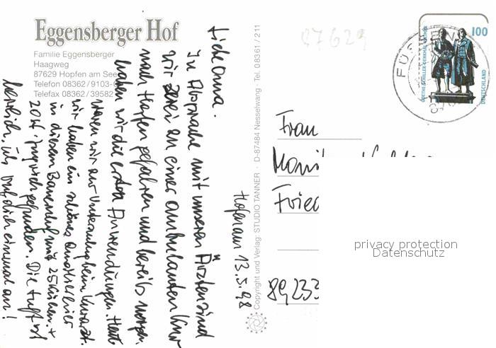 72872717 alte Postkarte Hopfen See Eggensberger Hof postalisch gelaufen Erhaltung siehe scans [LiesaD40] KatCode: 11110009777129