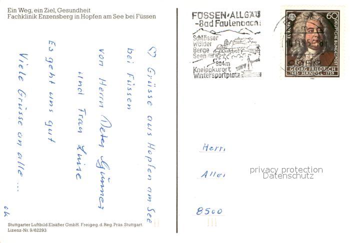 73720966 alte Postkarte Hopfen See Fachklinik Enzensberg Fliegeraufnahme postalisch gelaufen Erhaltung siehe scans [WerneD78] KatCode: 11110009777129