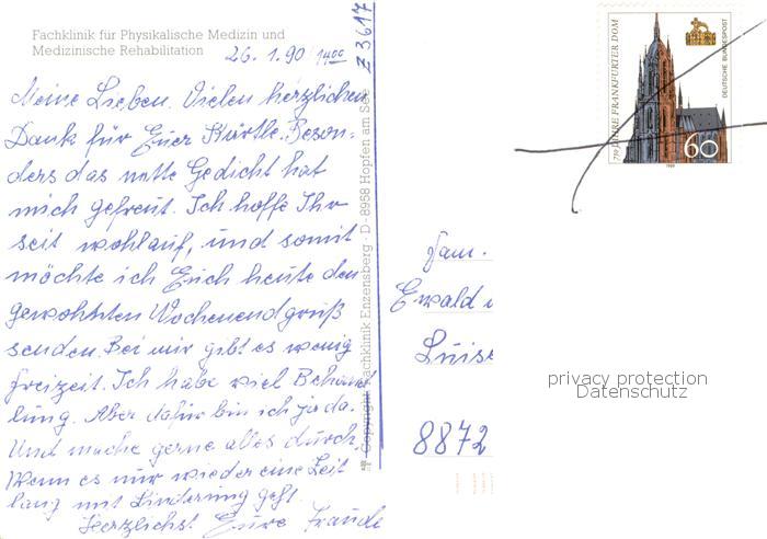 73760110 alte Postkarte Hopfen See Fachklinik Enzensberg fuer Physikalische Medizin postalisch gelaufen Erhaltung siehe scans [WerneD78] KatCode: 11110009777129