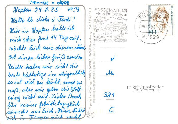 73165743 alte Postkarte Hopfen See Fliegeraufnahme postalisch gelaufen Erhaltung siehe scans [WerneD78] KatCode: 11110009777129