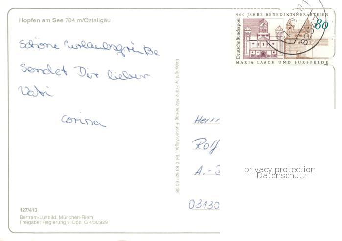 73055762 alte Postkarte Hopfen See Fliegeraufnahme postalisch gelaufen Erhaltung siehe scans [NatalD47] KatCode: 11110009777129