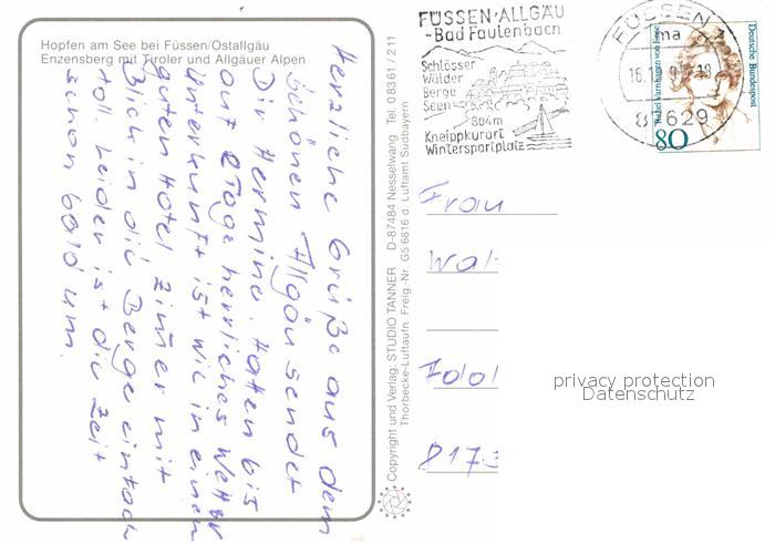 72890258 alte Postkarte Hopfen See Fliegeraufnahme Enzensberg Alpen postalisch gelaufen Erhaltung siehe scans [AndreD76] KatCode: 11110009777129
