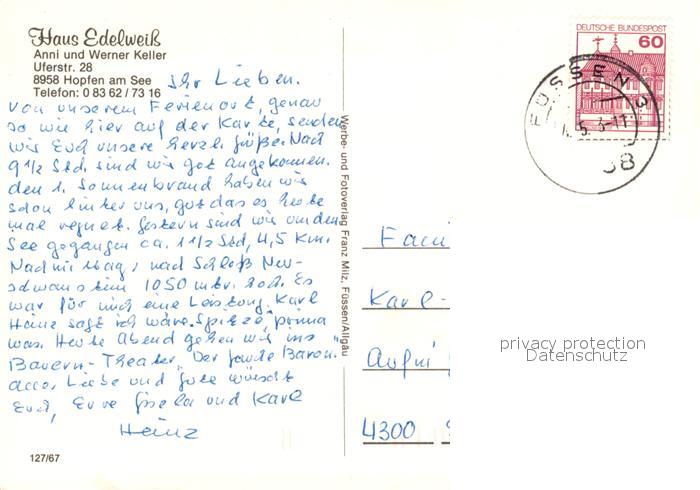 73544865 alte Postkarte Hopfen See Gaestehaus Pension Haus Edelweiss postalisch gelaufen Erhaltung siehe scans [FriedD77] KatCode: 11110009777129