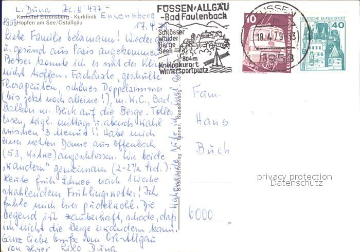 72306673 alte Postkarte Hopfen See Kurhotel Enzensberg Kurklinik Kurzentrum Hopfensee Med Institut postalisch gelaufen Erhaltung siehe scans KatCode: 11110009777129