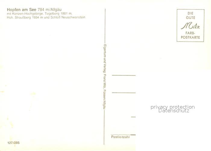 73597268 Hopfen See mit Kenzen Hochgebirge Tegelberg Hoh Straussberg und Schloss Neuschwanstein postalisch nicht gelaufen Erhaltung siehe scans [WerneD78] KatCode: 11110009777129