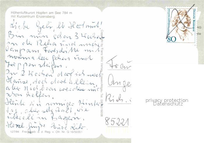 72639072 Hopfen See mit Kurzentrum Enzensberg Fliegeraufnahme postalisch nicht gelaufen Erhaltung siehe scans [WerneD78] KatCode: 11110009777129