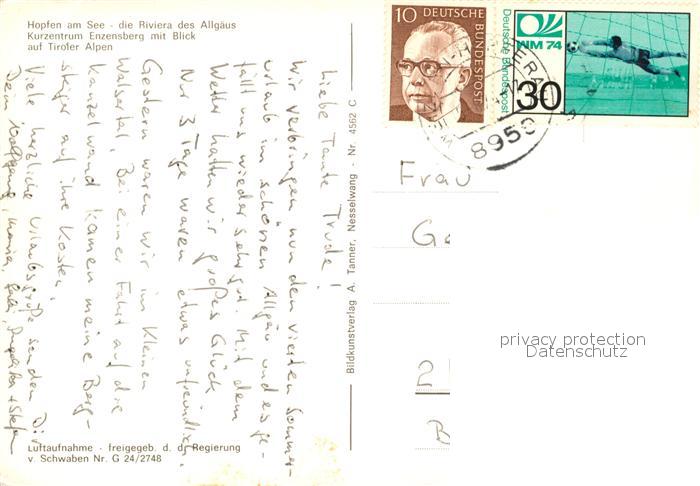 73577804 alte Postkarte Hopfen See Panorama Kurzentrum Enzensberg Tiroler Alpen Fliegeraufnahme postalisch gelaufen Erhaltung siehe scans [FriedD77] KatCode: 11110009777129