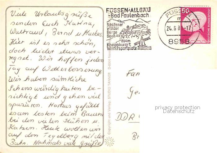 72654293 alte Postkarte Hopfen See Panorama Schloss Neuschwanstein und Hohenschwangau Tegelbergbahn Lechfall postalisch gelaufen Erhaltung siehe scans [WerneD78] KatCode: 11110009777129