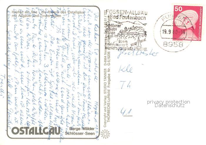 73636896 alte Postkarte Hopfen See Riviera des Ostallgaeus mit Allgaeuer und Tiroler Alpen Fliegeraufnahme postalisch gelaufen Erhaltung siehe scans [FriedD77] KatCode: 11110009777129