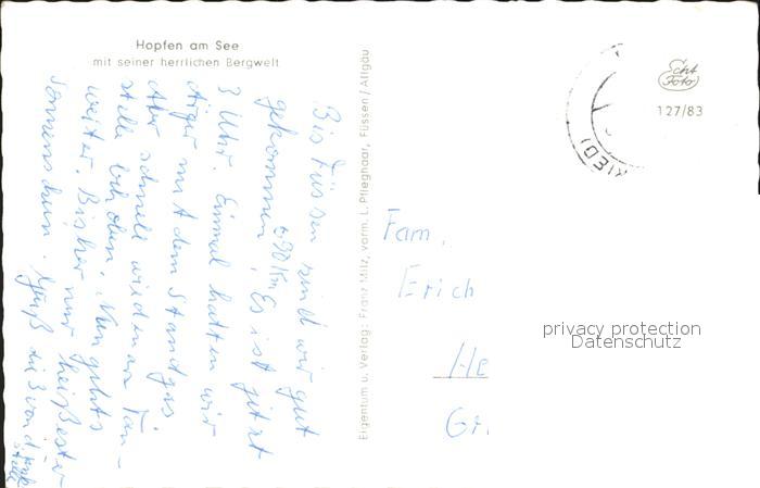72200163 alte Postkarte Hopfen See See Berge postalisch gelaufen Erhaltung siehe scans KatCode: 11110009777129