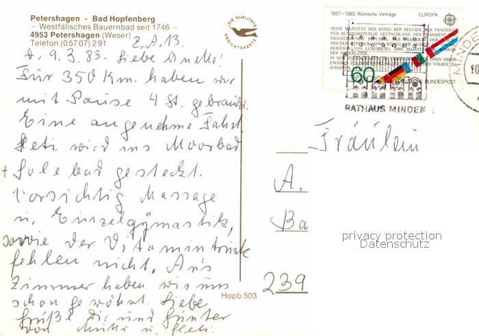72683993 alte Postkarte Hopfenberg Bad Westfaelische Bauernbad postalisch gelaufen Erhaltung siehe scans [AndreD76] KatCode: 11110005770028