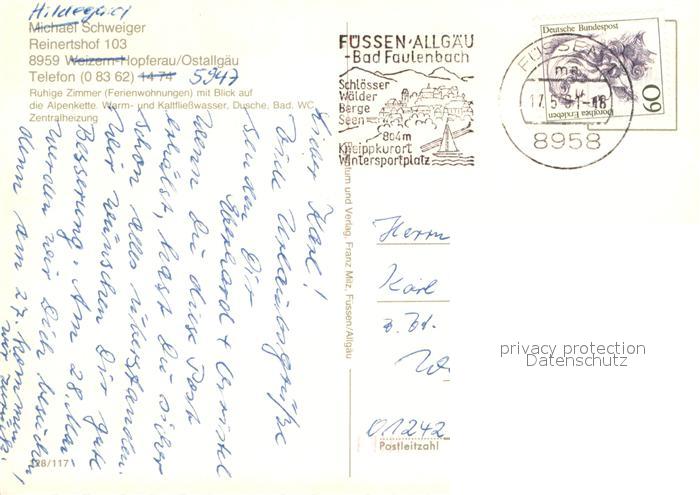 73654290 alte Postkarte Hopferau Haus Schweiger Seepanorama Schloss Neuschwanstein postalisch gelaufen Erhaltung siehe scans [WerneD78] KatCode: 11110009777135