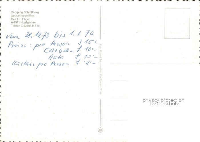 72288289 Hopfgarten Brixental Camping Schlossberg Winter postalisch nicht gelaufen Erhaltung siehe scans KatCode: 11390335070406