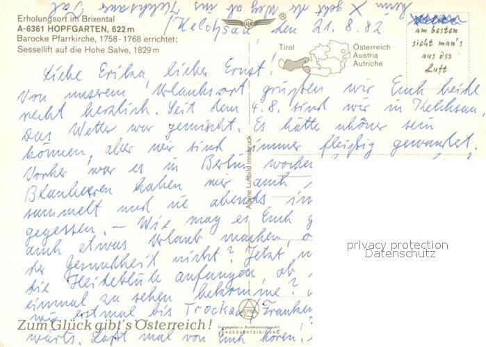 73173970 Hopfgarten Brixental Fliegeraufnahme postalisch nicht gelaufen Erhaltung siehe scans [NatalD47] KatCode: 11390335070406