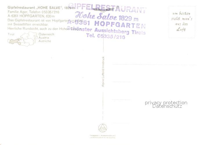73297686 Hopfgarten Brixental Gipfelrestaurant Hohe Salve postalisch nicht gelaufen Erhaltung siehe scans [PaolaD17] KatCode: 11390335070406
