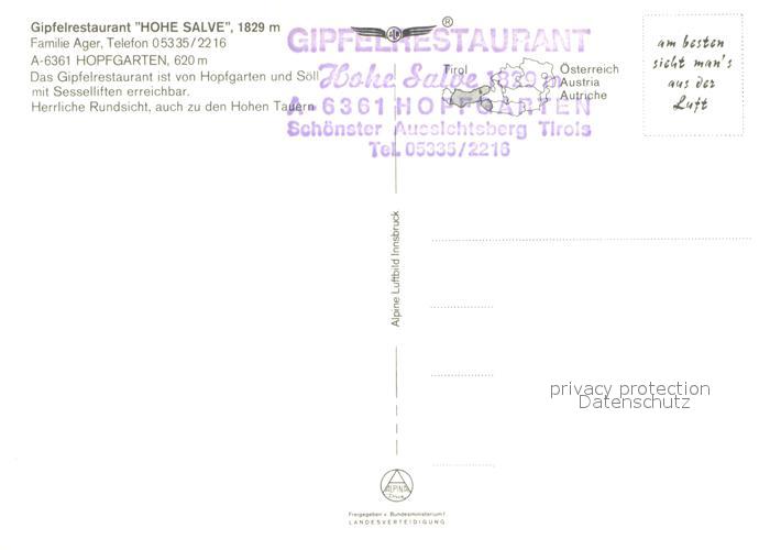 72943254 Hopfgarten Brixental Gipfelrestaurant Hohe Salve postalisch nicht gelaufen Erhaltung siehe scans [KathaD81] KatCode: 11390335070406