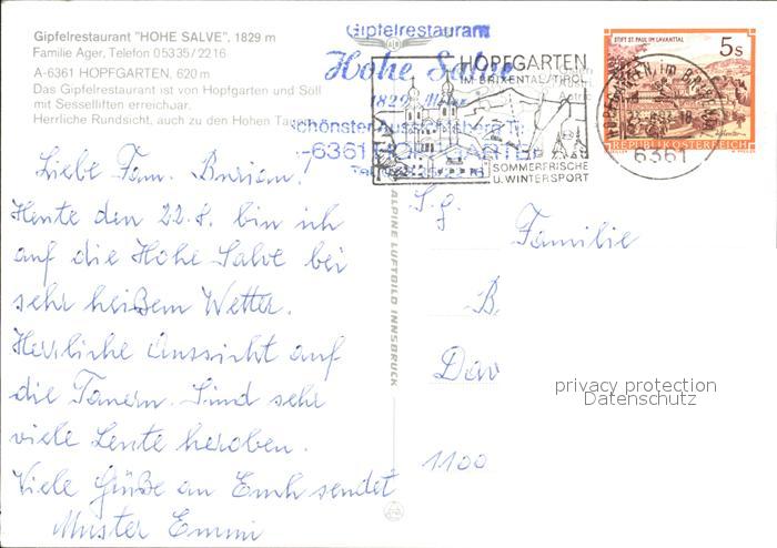 72375028 alte Postkarte Hopfgarten Brixental Gipfelrestaurant Hohe Salve postalisch gelaufen Erhaltung siehe scans KatCode: 11390335070406