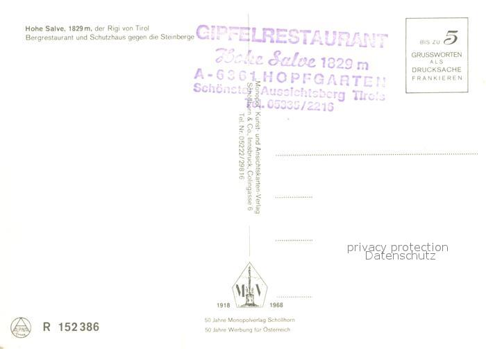 72943255 Hopfgarten Brixental Hohe Salve Bergrestaurant Schutzhaus Steinberge postalisch nicht gelaufen Erhaltung siehe scans [KathaD81] KatCode: 11390335070406
