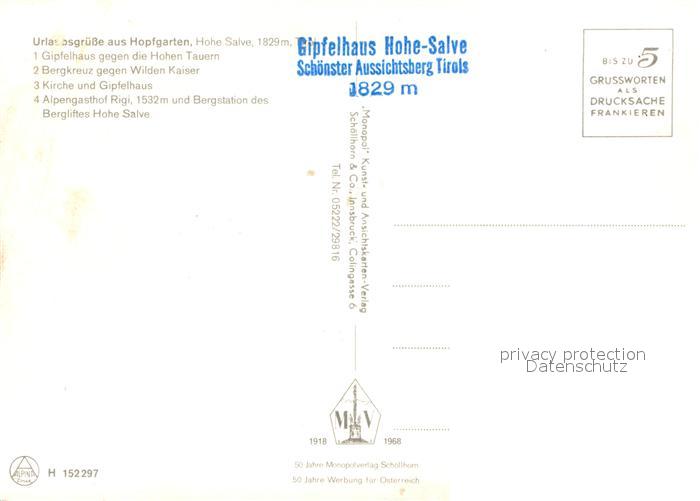 73022376 Hopfgarten Brixental Hohe Salve Gipfelhaus Bergkreuz Wilder Kaiser Alpengasthof Rigi postalisch nicht gelaufen Erhaltung siehe scans [PaolaD17] KatCode: 11390335070406