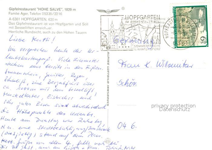 72942985 alte Postkarte Hopfgarten Brixental Hohe Salve Gipfelrestaurant Hohe Tauern postalisch gelaufen Erhaltung siehe scans [KathaD81] KatCode: 11390335070406