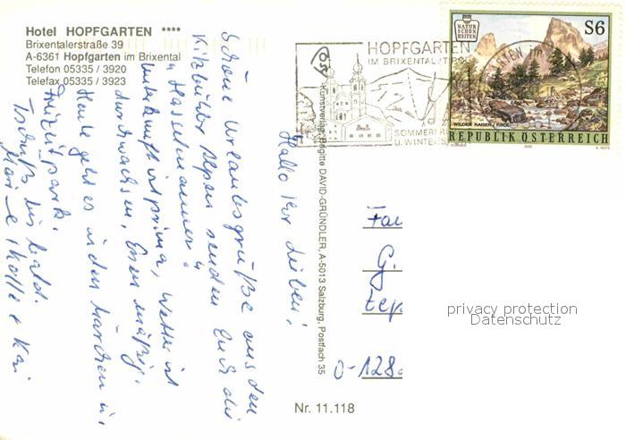 12754984 alte Postkarte Hopfgarten Brixental Hotel Hopfgarten postalisch gelaufen Erhaltung siehe scans [AndreD76] KatCode: 11390335070406