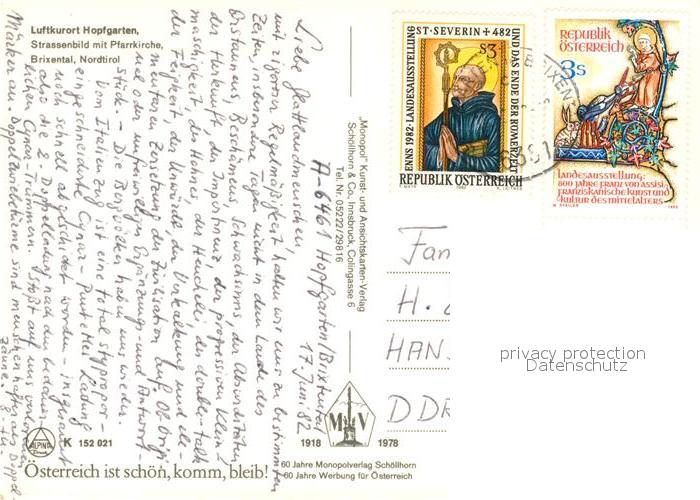 73304402 alte Postkarte Hopfgarten Brixental Strassenbild mit Pfarrkirche postalisch gelaufen Erhaltung siehe scans [FriedD77] KatCode: 11390335070406