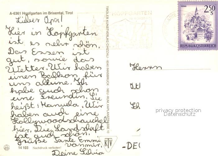 73598699 alte Postkarte Hopfgarten Brixental postalisch gelaufen Erhaltung siehe scans [PaolaD17] KatCode: 11390335070406