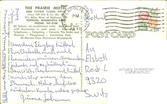 11686209 old postcard Hopkins Minnesota The Prairie Motel postalisch gelaufen Erhaltung siehe scans KatCode: 14140250000000