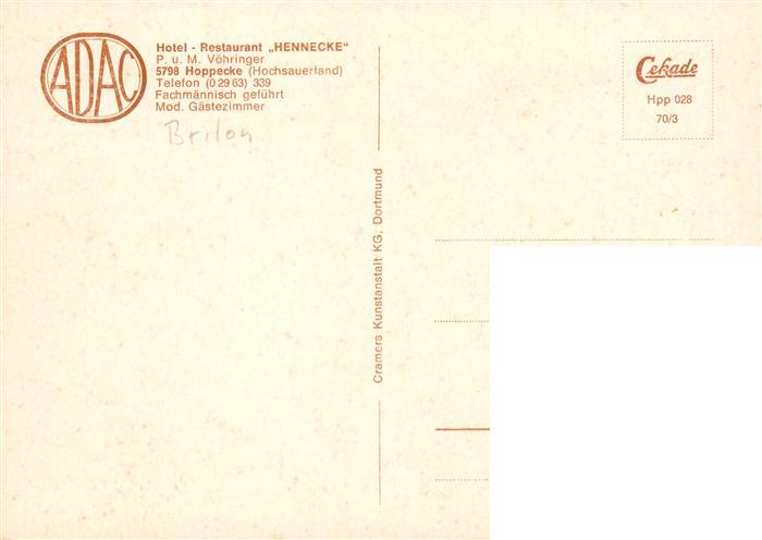 73912269 Hoppecke Brilon Hotel Restaurant Hennecke Gastraeume postalisch nicht gelaufen Erhaltung siehe scans [WerneD78] KatCode: 11110005958012