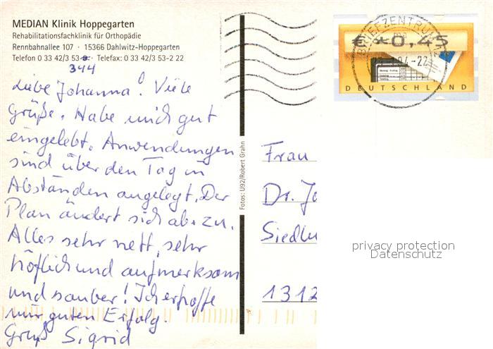73613936 alte Postkarte Hoppegarten Median Klinik Park Hallenbad Restaurant postalisch gelaufen Erhaltung siehe scans [FriedD77] KatCode: 11110012064227