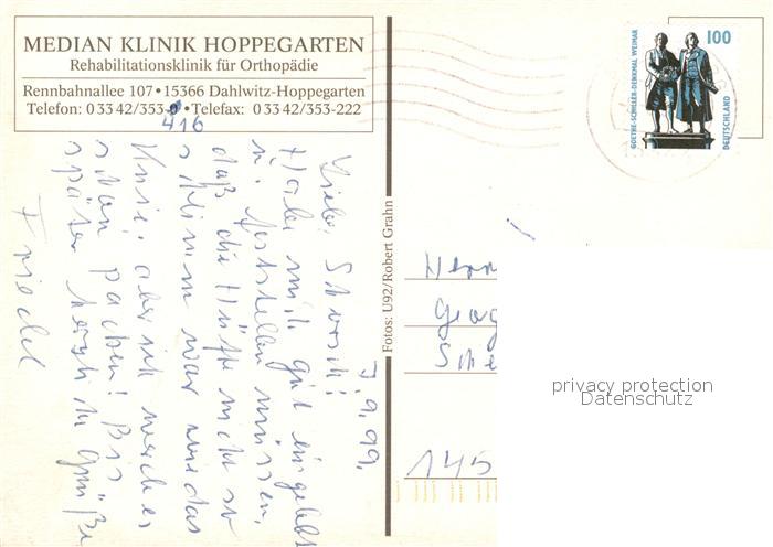 73097930 alte Postkarte Hoppegarten Medianklinik Hoppegarten postalisch gelaufen Erhaltung siehe scans [WerneD78] KatCode: 11110012064227