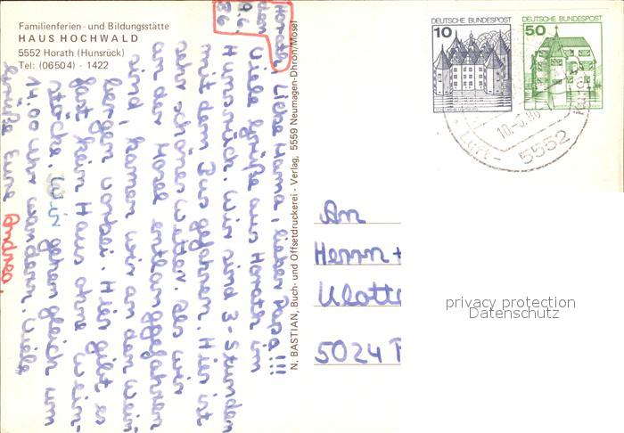 72418486 alte Postkarte Horath Familienferien und Bildungsstaette Haus Hochwald Hunsrueck postalisch gelaufen Erhaltung siehe scans KatCode: 11110007231058