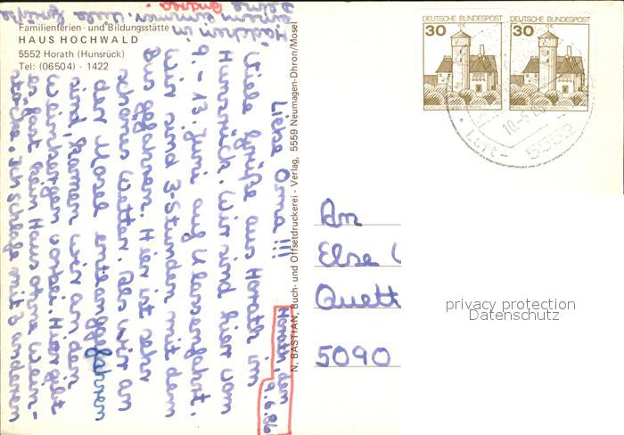 72417389 alte Postkarte Horath Haus Hochwald postalisch gelaufen Erhaltung siehe scans KatCode: 11110007231058