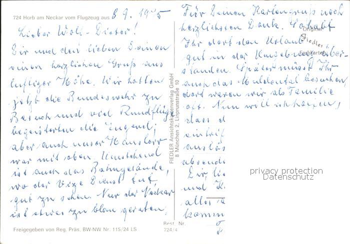 Horb Neckar Fliegeraufnahme postalisch nicht gelaufen Erhaltung siehe scans