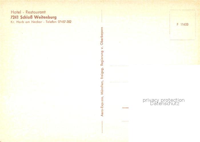 73701104 Horb Neckar Hotel Restaurant Schloss Weitenburg Fliegeraufnahme postalisch nicht gelaufen Erhaltung siehe scans [WerneD78] KatCode: 11110008237040