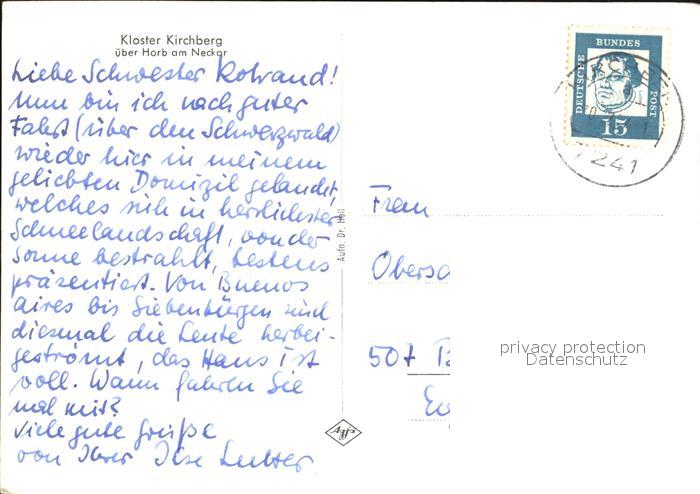 72446806 alte Postkarte Horb Neckar Kloster Kirchberg postalisch gelaufen Erhaltung siehe scans KatCode: 11110008237040