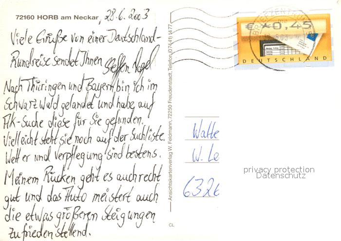 73182708 alte Postkarte Horb Neckar Markt Kirche Fliegeraufnahme Neckarpartie postalisch gelaufen Erhaltung siehe scans [WerneD78] KatCode: 11110008237040