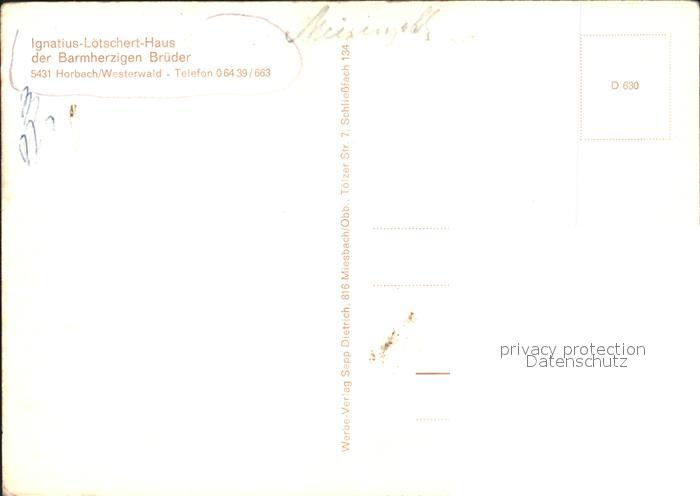 72063215 Horbach Westerwald Ignatius Loetschert Haus der barmherzigen Brueder postalisch nicht gelaufen Erhaltung siehe scans KatCode: 11110007143034