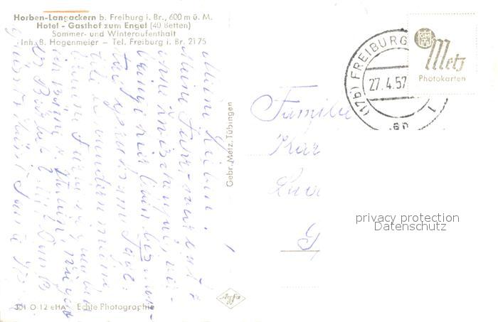 73710460 alte Postkarte Horben Breisgau Hotel-Gasthof Zum Engel postalisch gelaufen Erhaltung siehe scans [LiesaD40] KatCode: 11110008315056