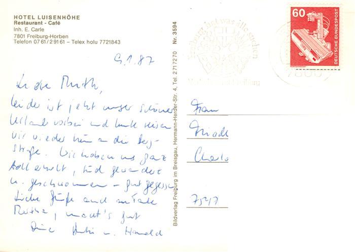 73931903 alte Postkarte Horben Breisgau Schwarzwald Winterpanorama mit Hotel Luisenhoehe postalisch gelaufen Erhaltung siehe scans [FriedD77] KatCode: 11110008315056