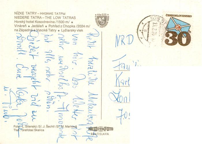 old postcard Horehronie SK Hotel Kosodrevina Restaurant Wintersportplatz Gebirgspanorama Niedere Tatra postalisch gelaufen Erhaltung siehe scans [FriedD77]