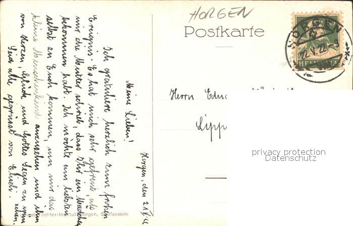 11706435 alte Postkarte Horgen ZH Evangelische Tochter-Institut Suedfassade postalisch gelaufen Erhaltung siehe scans KatCode: 11470260890322